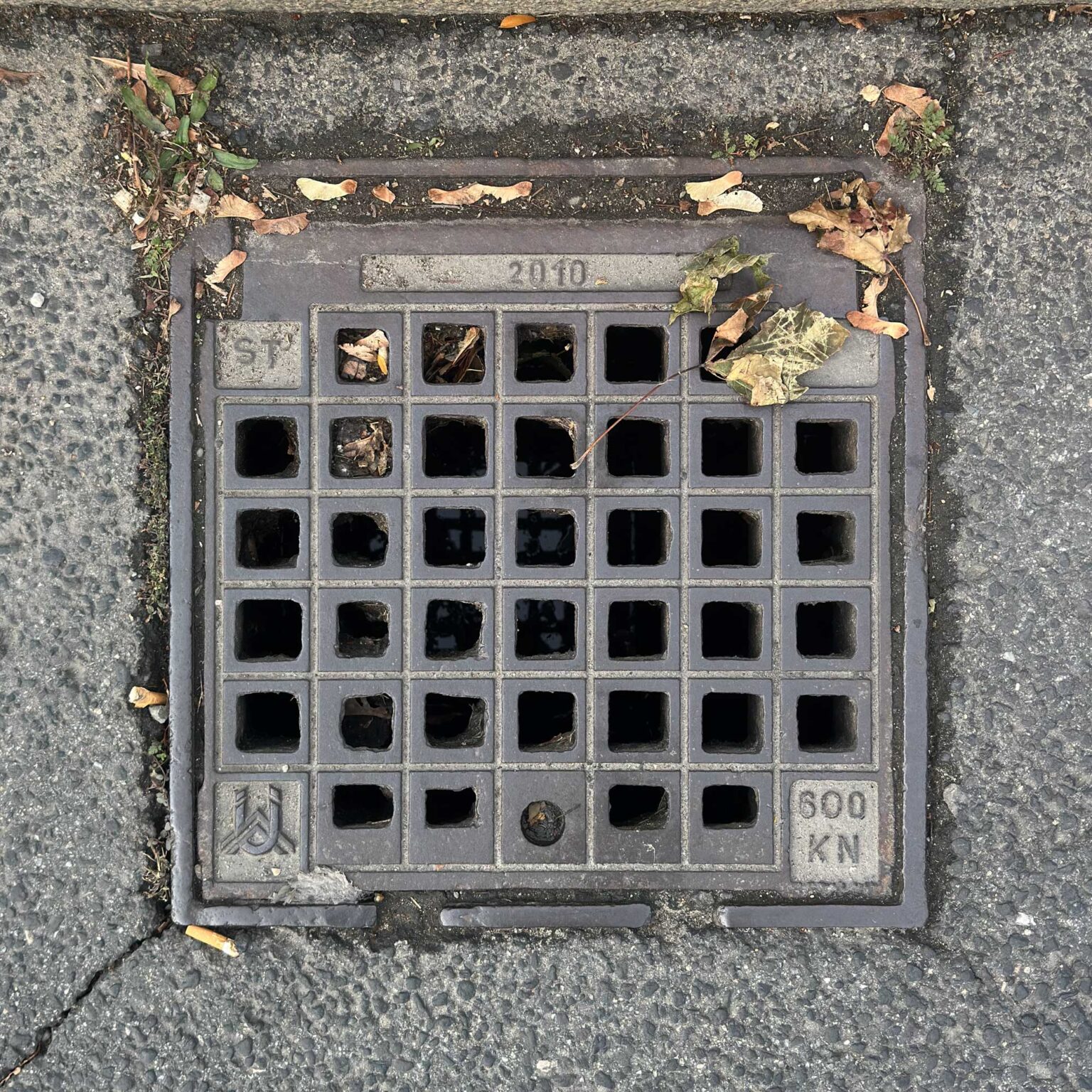 Liegt namenlos in einer ruhigen Gasse. Grauer Asphalt umschließt ihn, nur der schwache Glanz des Metalls verrät seine Präsenz. Trostlos und unauffällig, ein stiller Begleiter des Stadtalltags.